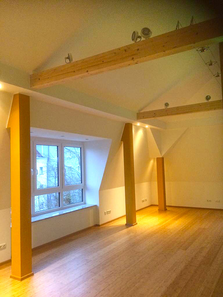 Dieses Projekt war eine wachsende Baustelle. Am Anfang stand nur die Isolierung für den Speicher an. Nach und nach wuchsen die Wünsche des Bauherren, die im perfekten Zusammenspiel zw. Bauherr, Architekt und primusbau voll erfüllt wurden. Am Ende stand der komplette Innenausbaus zu einem hochwertigen Studio-Appartement – mit einem einzigartigen Raumgefühl und einigen Highlights, wie z.B. :